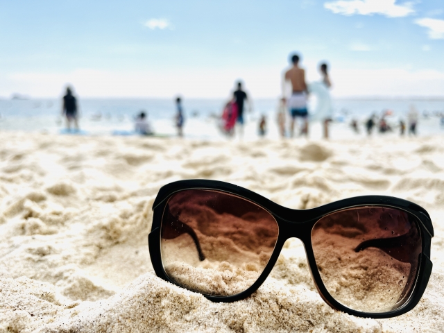 サングラス 〈名詞〉 色がついたメガネ。太陽の光などから目を守るために使う。