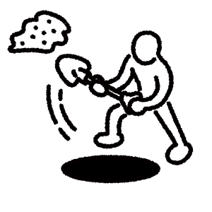 「根堀り」・・・「根」は木の土の中にある部分。その「根」を掘るのが「根堀り」で、木の下の見えない部分を掘る、土に穴を開けて、根のところを出すということが「根堀り」。