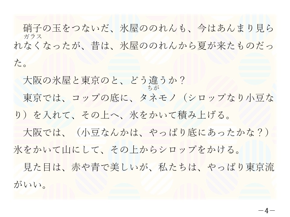 6問目 大阪の氷屋と東京の氷屋とどう違いますか。筆者はどちらが好きですか。