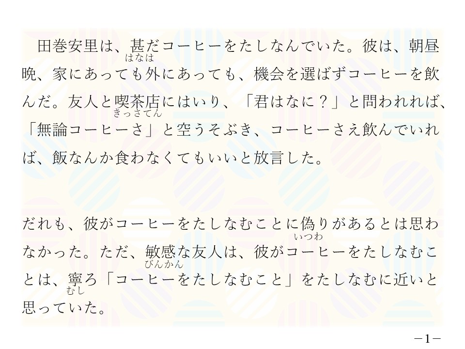 1.鑑賞のタスケ 「田巻安里のコーヒー」