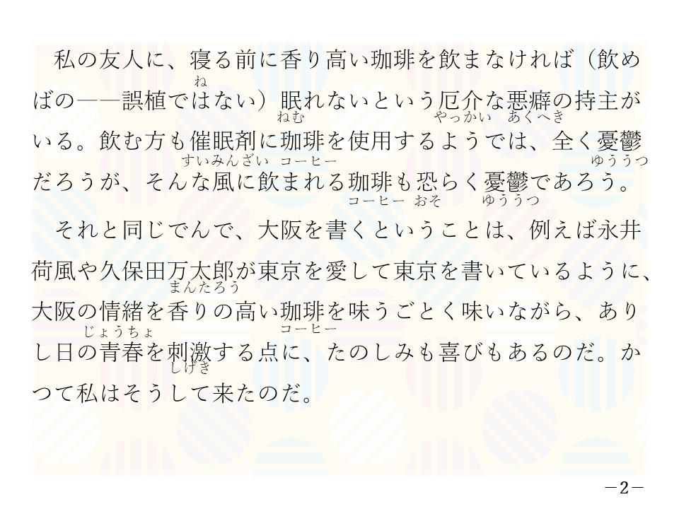 —大阪を書くことは大阪の情緒を香りの高い珈琲を味わうごとく味わい❶ながら、